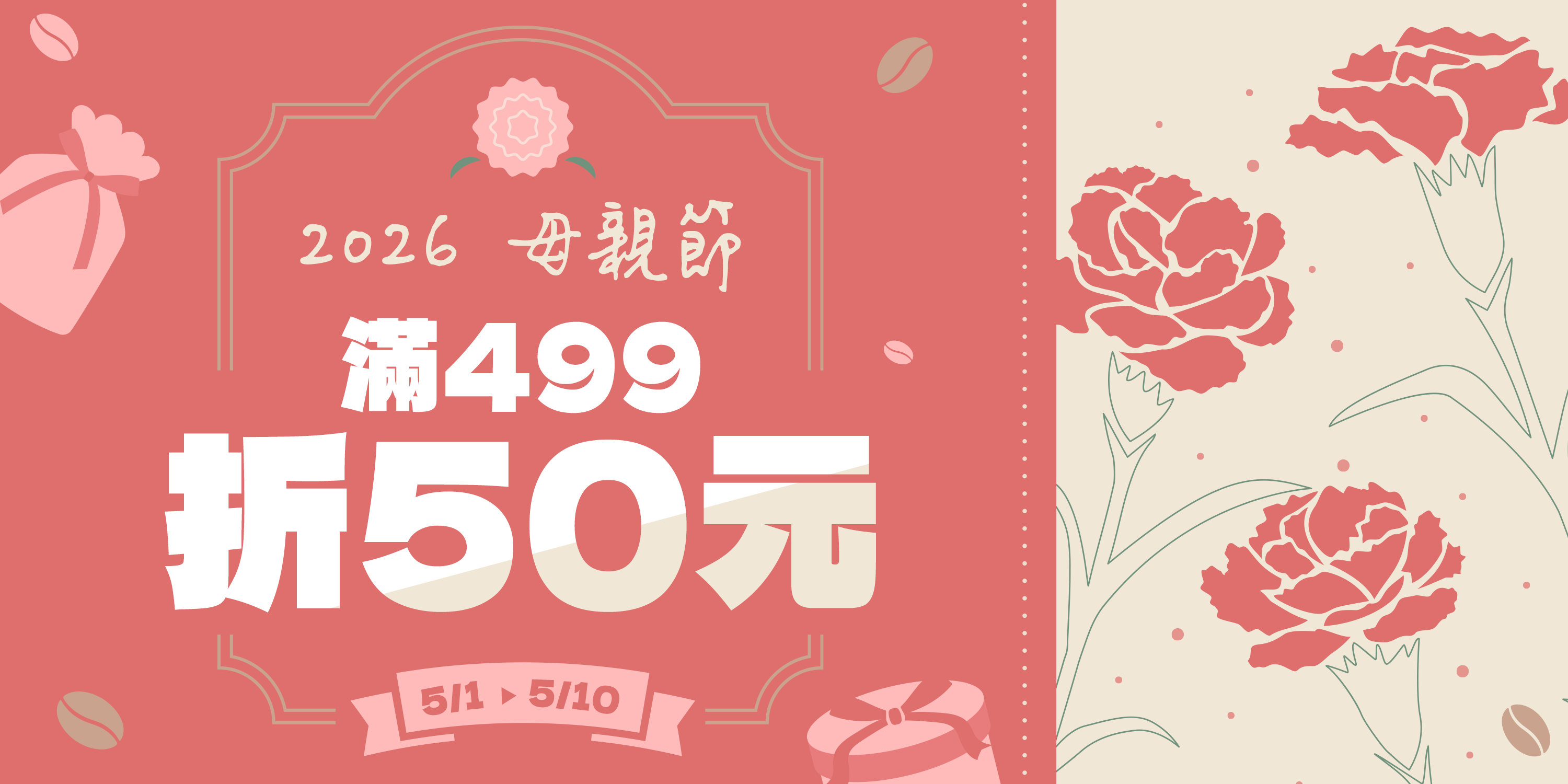 母親節限定滿499元立即折40元,咖啡探險